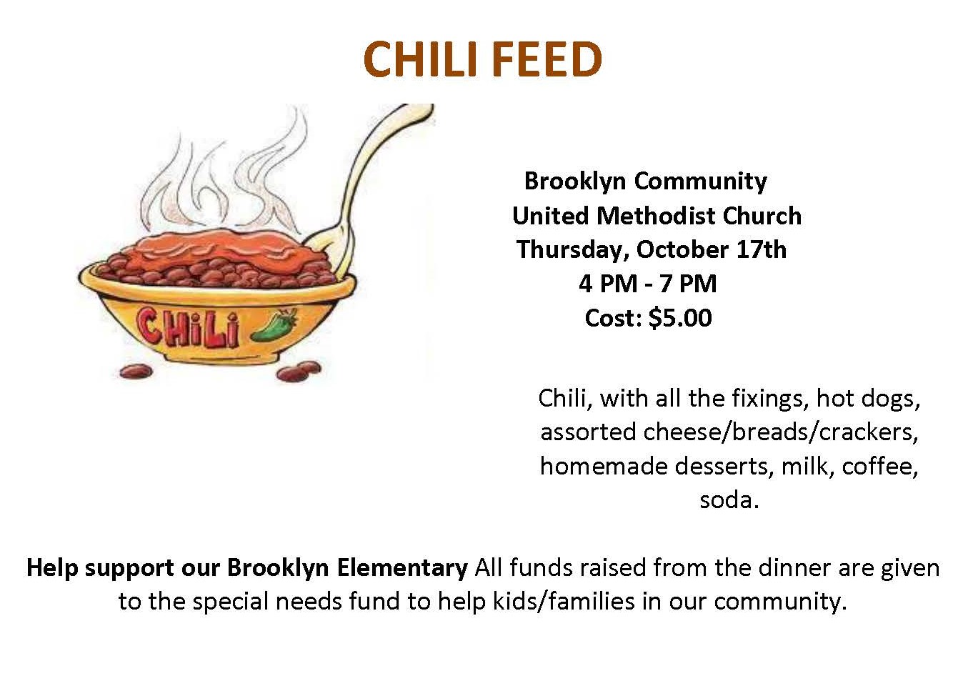 Brooklyn Methodist Chili Feed – Oct. 17th