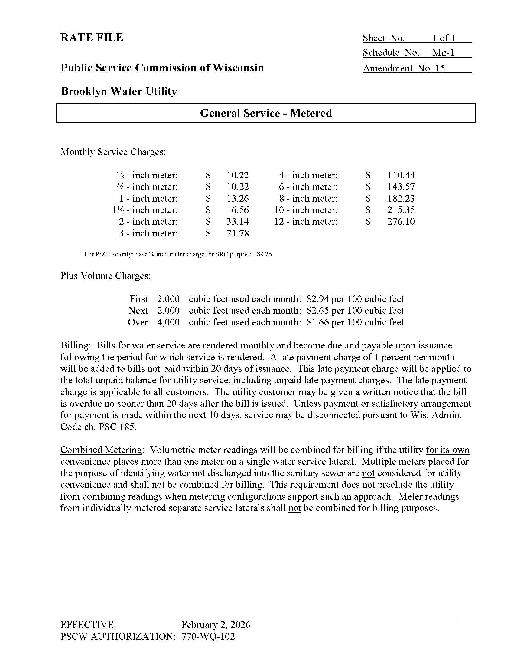 New water rates effective 2/2/2026. Will appear on the March 5, 2026 billings.